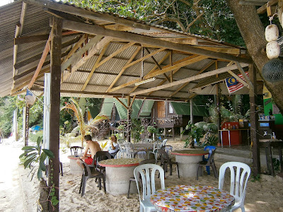 Kapas Beach Chalet (KBC) which despite not looking as cool as Captain Long House had the most traveller types hanging around mid week - and lots of locals weekend (plus a hamburger stand on the beach with (2011) rm5 whoppers - delicious! rm3 standard - who says the dollar-burger has gone?) 2011:Chalets rm70/60/40 plus a rm 15dorm - well duh, maybe those prices explain the travellers.