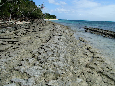 Green Island off Cairns is a fully vegetated coral cay – apparently the only one in Australia (although I have seen way better in the nearby western Pacific). Fully vegetated coral cays result from an atoll attacked by storm waves filling or part-filling its lagoon with sand and coral chunks which are then heaped up by wind and wave action. Vegetation is the result of seeds dropped by birds, washed onshore by waves, blown by storm winds – given long enough a secondary rainforest results. I’ve never seen a full blown rainforest on a coral cay.